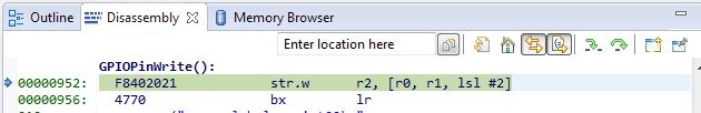 //includes #include <stdint.h> // Variable definitions for the C99 standard. #include <stdio.h> // Input and output facilities for the C99 standard. #include <stdbool.h> // Boolean definitions for the C99 standard. #include "inc/tm4c123gh6pge.h" // Definitions for the interrupt and register assignments. #include "inc/hw_memmap.h" // Memory map definitions of the Tiva C Series device. #include "inc/hw_types.h" // Definitions of common types and macros. #include "inc/hw_gpio.h" #include "driverlib/sysctl.h" // Definitions and macros for System Control API of DriverLib. #include "driverlib/interrupt.h" // Defines and macros for NVIC Controller API of DriverLib. #include "driverlib/gpio.h" // Definitions and macros for GPIO API of DriverLib. #include "driverlib/timer.h" // Defines and macros for Timer API of DriverLib. #include "driverlib/pin_map.h" //Mapping of peripherals to pins for all parts. #include "driverlib/uart.h" // Definitions and macros for UART API of DriverLib. #include "driverlib/adc.h" // Definitions for ADC API of DriverLib. #include "driverlib/fpu.h" // Prototypes for the FPU manipulation routines. #include "utils/uartstdio.h" // Prototypes for the UART console functions. // Needs to add "utils/uartstdio.c" through a relative link. //definitions #define UART1_BAUDRATE 115200 // UART baudrate in bps // function prototypes void init_timer(void); void duty_cycle(void); void init_UART(void); // global variables uint32_t sys_clock; uint32_t start = 0, end = 0, length = 0; uint32_t int_flag = 0; int main(void) { // Configure system clock at 40 MHz SysCtlClockSet(SYSCTL_SYSDIV_5|SYSCTL_USE_PLL|SYSCTL_XTAL_16MHZ|SYSCTL_OSC_MAIN); sys_clock = SysCtlClockGet(); //ISR Processor Cycle SysCtlPeripheralEnable(SYSCTL_PERIPH_GPIOD); SysCtlPeripheralEnable(SYSCTL_PERIPH_GPIOG); // Enable the processor to respond to interrupts. IntMasterEnable(); init_UART(); UARTprintf("\n TCLK = %d\n" , sys_clock); // GPIO PD[2]-TA, PD[3]-TB output duration for ISR processing time GPIOPinTypeGPIOOutput(GPIO_PORTD_BASE, GPIO_PIN_2 | GPIO_PIN_3 ); init_timer(); TimerEnable(TIMER0_BASE, TIMER_BOTH); while(1){ GPIOPinWrite(GPIO_PORTD_BASE, GPIO_PIN_2, ~GPIO_PIN_2); if (int_flag == 0x1) { int_flag = 0; // GPIOPinWrite(GPIO_PORTD_BASE, GPIO_PIN_2, GPIO_PIN_2); UARTprintf("\nDUTY : %d = %d (End) - %d (Start) \n", length, end,start); // GPIOPinWrite(GPIO_PORTD_BASE, GPIO_PIN_2, 0); } } } void init_timer(void) { // Enable and configure Timer0 peripheral. SysCtlPeripheralEnable(SYSCTL_PERIPH_TIMER0); // Initialize timer A and B to count up in edge time mode TimerConfigure(TIMER0_BASE, (TIMER_CFG_SPLIT_PAIR | TIMER_CFG_A_CAP_TIME_UP | TIMER_CFG_B_CAP_TIME_UP)); // Timer a records pos edge time and Timer b records neg edge time TimerControlEvent(TIMER0_BASE, TIMER_A, TIMER_EVENT_POS_EDGE); TimerControlEvent(TIMER0_BASE, TIMER_B, TIMER_EVENT_NEG_EDGE); //set the value that the timers count // Input signal 20Mhz, Ts=0.05us , Sysclk 40Mhz Tc=0.025 , Count = 0.05us/0.025us = 2 (2-1=1 (0x1) // Input signal 1Mhz, Ts=1us , Sysclk 40Mhz Tc=0.025 , Count = 1us/0.025us = 40 (40-1=39 (0x27) // Input signal 500Khz, Ts=2us , Sysclk 40Mhz Tc=0.025 , Count = 2us/0.025us = 80 (80-1=79 (0x4F) // Input signal 200Khz, Ts=5us , Sysclk 40Mhz Tc=0.025 , Count = 5us/0.025us = 200 (200-1=199 (0xC7) // Input signal 1Khz, Ts=1ms , Sysclk 40Mhz Tc=0.025 , Count = 1ms/0.025us = 40000 (40000-1=39999 (0x9C3F) TimerLoadSet(TIMER0_BASE, TIMER_BOTH, 0x4F); TimerSynchronize(TIMER0_BASE,TIMER_0A_SYNC|TIMER_0B_SYNC ); //Configure the pin that the timer reads from (PF0) SysCtlPeripheralEnable(SYSCTL_PERIPH_GPIOF); // TM4C Port-F0 unlocked and commit contol register be set. PA[1:0], PA[5:2] , PB[3:2] , PC[3:0], PD[7], PF[0] HWREG(GPIO_PORTF_BASE + GPIO_O_LOCK) = GPIO_LOCK_KEY; HWREG(GPIO_PORTF_BASE + GPIO_O_CR) |= GPIO_PIN_0; // GPIO Configuration , T0CCP0 (TA)-PF[0], T0CCP1(TB)-PF[1] GPIOPinConfigure(GPIO_PF0_T0CCP0); GPIOPinConfigure(GPIO_PF1_T0CCP1); GPIOPinTypeTimer(GPIO_PORTF_BASE, GPIO_PIN_0 | GPIO_PIN_1); // Timer Interrupt Clear ( TA , TB) TimerIntClear(TIMER0_BASE, TIMER_CAPA_EVENT|TIMER_CAPB_EVENT); // Enable the indicated timer interrupt source. TimerIntEnable(TIMER0_BASE, TIMER_CAPA_EVENT|TIMER_CAPB_EVENT); // The specified interrupt is enabled in the interrupt controller. IntEnable(INT_TIMER0A); IntEnable(INT_TIMER0B); } // TIMERA , rise edge , Interrupt ISR void Timer0AIntHandler(void) { GPIOPinWrite(GPIO_PORTD_BASE, GPIO_PIN_2, GPIO_PIN_2); TimerIntClear(TIMER0_BASE, TIMER_CAPA_EVENT); start = TimerValueGet(TIMER0_BASE, TIMER_A); GPIOPinWrite(GPIO_PORTD_BASE, GPIO_PIN_2, 0); } // TIMERB , fall edge , Interrupt ISR void Timer0BIntHandler(void) { GPIOPinWrite(GPIO_PORTD_BASE, GPIO_PIN_3, GPIO_PIN_3); TimerIntClear(TIMER0_BASE, TIMER_CAPB_EVENT); end = TimerValueGet(TIMER0_BASE, TIMER_B); length = end - start; int_flag = 1; GPIOPinWrite(GPIO_PORTD_BASE, GPIO_PIN_3, 0); } void init_UART(void) { // Enable and configure UART0 for debugging printouts. SysCtlPeripheralEnable(SYSCTL_PERIPH_UART0); SysCtlPeripheralEnable(SYSCTL_PERIPH_GPIOA); GPIOPinConfigure(GPIO_PA0_U0RX); GPIOPinConfigure(GPIO_PA1_U0TX); GPIOPinTypeUART(GPIO_PORTA_BASE, (GPIO_PIN_0 | GPIO_PIN_1)); UARTStdioConfig(0, UART1_BAUDRATE, sys_clock); }
