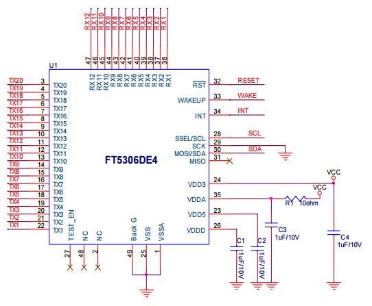 I am currently working to interface the Focal Touch Capacitive Touch Screen which has the FT5306 chip onboard and comes prepackaged. I am unable, however, to communicate with the device with my TIVA TM4C129 MCU with it. When I try to send and read data to the touch panel, I seem to be getting a NACK and am unsure as to why it that is. When I press down on the touch panel, I'm also not able to see the INT signal change meaning that I'm not sure if the touch panel is being detected correctly.