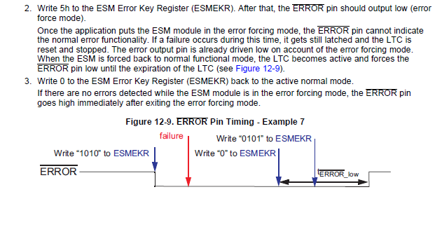 I am trying to implement error forcing on nerror pin as described in the TMS50LS1224 TRM (12.2.3 Forcing an Error Condition)