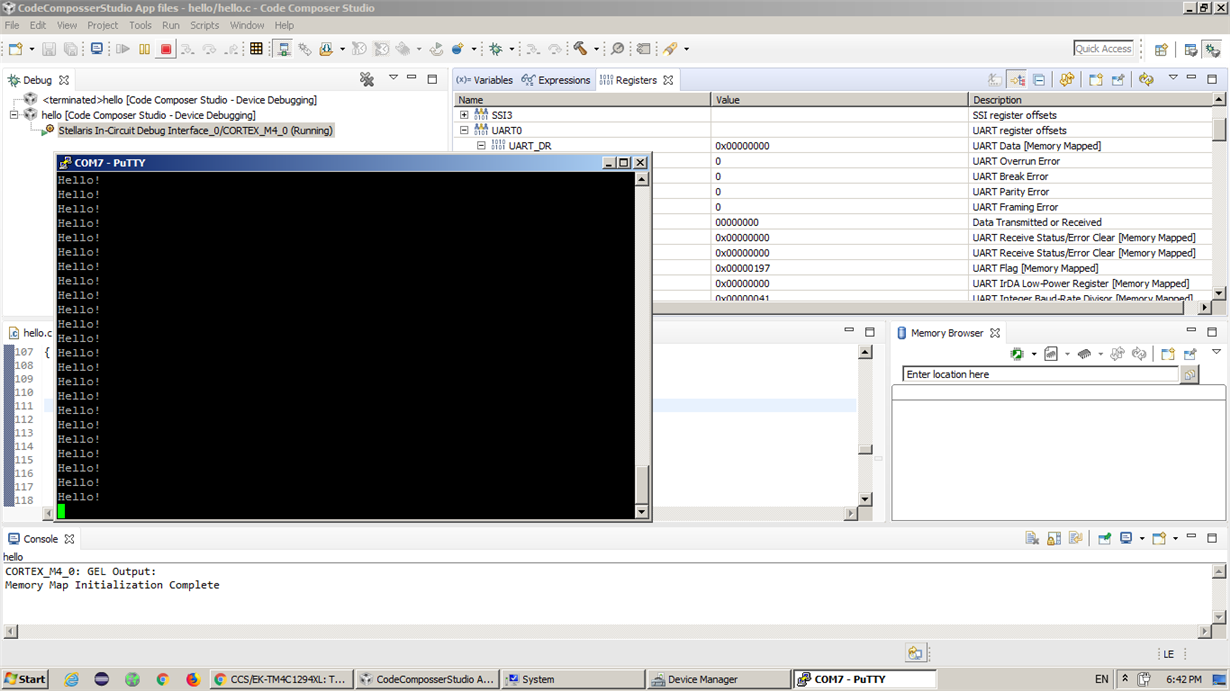 All the Baud rates, Parity , Stop bits are same for PC, puTTY & CCS/EK-TM4C1294XL, please is there any one has sorted out an issue like this?