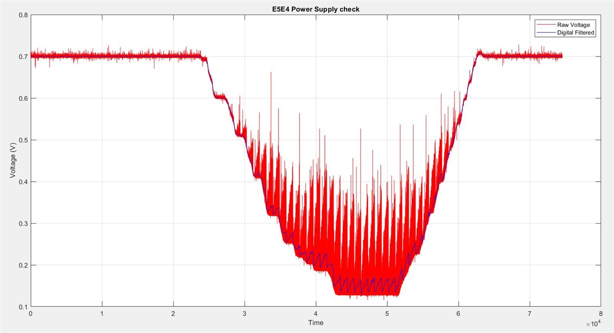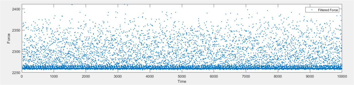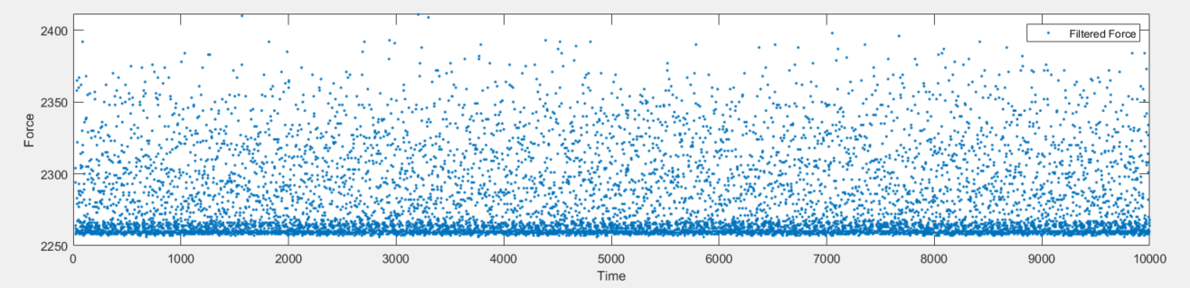Here is the curve. A multimeter showed an output from the force sensor to be 0.384 V. Ignore the legend, it is the unfiltered value.