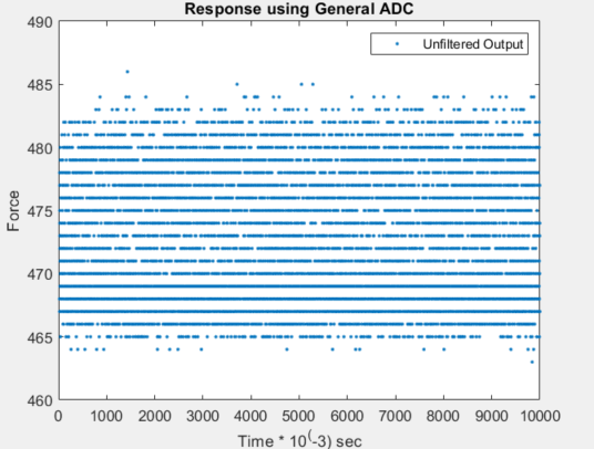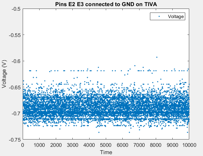 I saw a consistent noise of ~20mV, but the output of the ADC is showing somewhere around ~150-200 mV of noise. The output is also really weird. The noise will only really sit on top of the expected value, it never goes below it. More on that below. Here is my code.