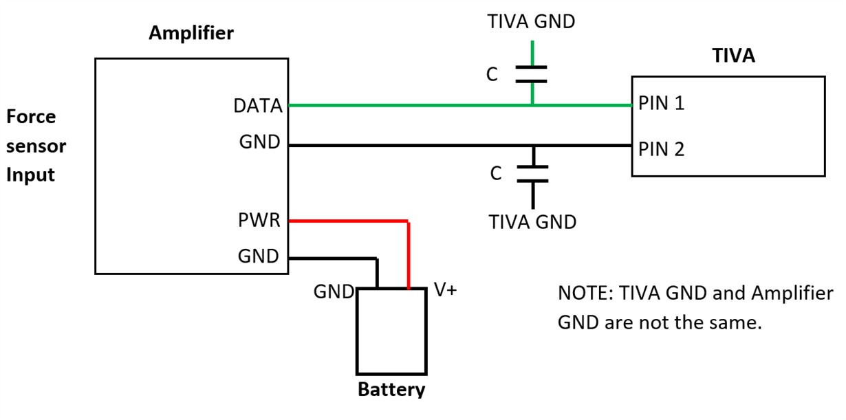 I'm trying to use the ADC to read the voltage of a force sensor I'm calibrating. The Force sensor outputs positive voltage for one direction and negative voltage for the other. I've setup my code to test single ended mode and differential mode, but I'm having issues using the differential mode. The output is very noisy. I attached an oscilloscope to observe the noise from the sensor.