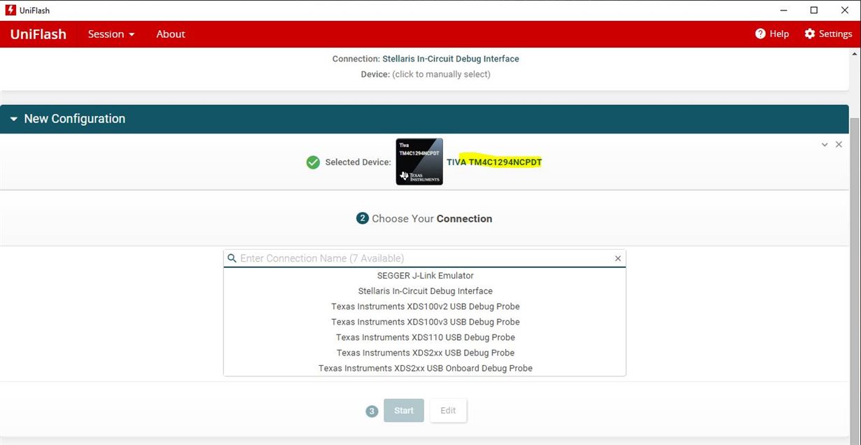 We have a custom board designed based on TM4c1294NCPDT. I am able to flash using Code composer. But I tried to use uniflash I get the following error