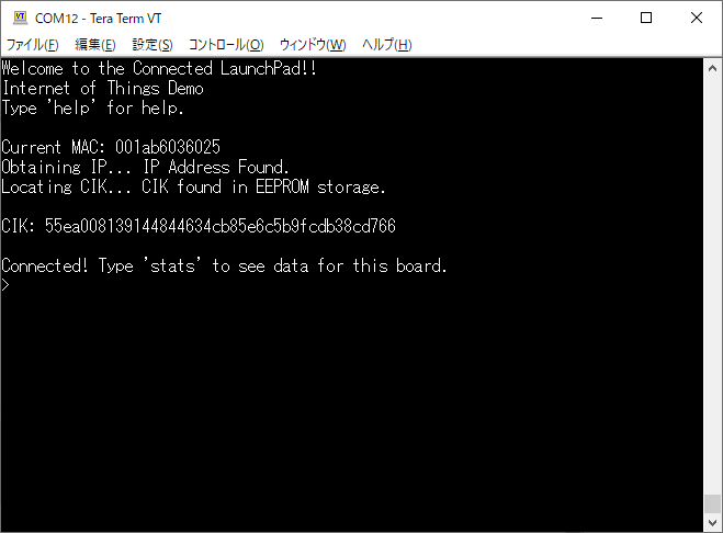 I don't know how to use "virtual COM port debug console", so I can't check if an IP address is assigned.