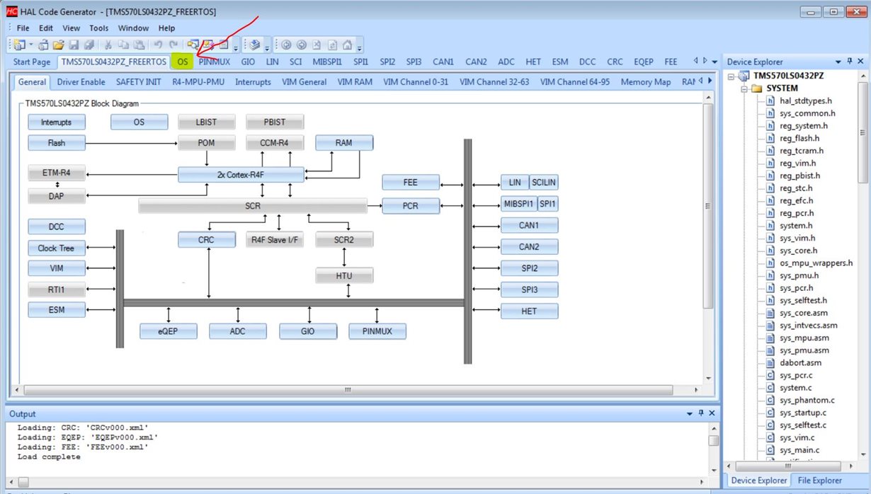 I am using Halcogen v04.07.01 and this version has not got an OS menu.