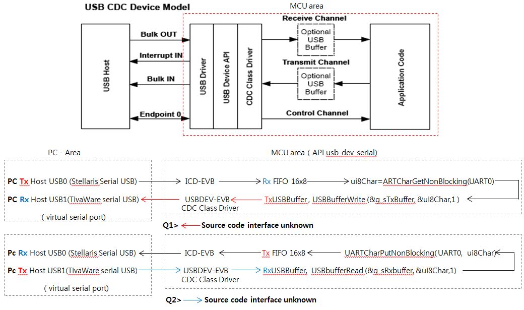 PC Host USB1(TivaWare serial USB)RX <------ USBDEV-EVB <----- USB Tx Buffer ( g_pi8USBTxBuffer[256] ) <----