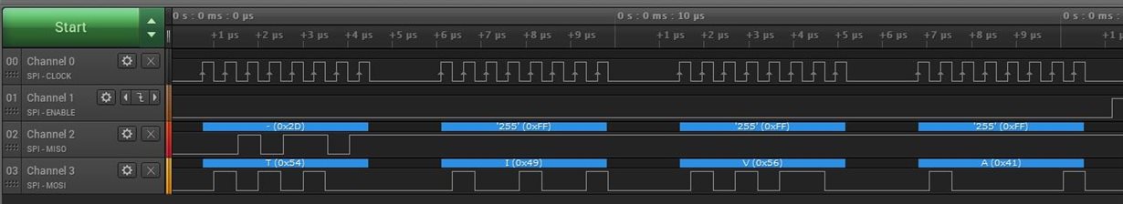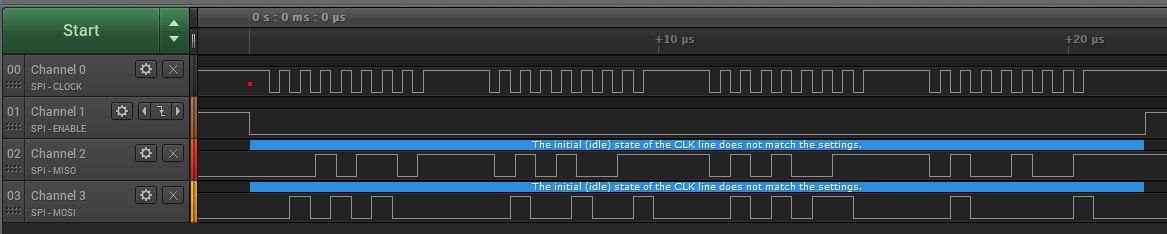 extern int16_t spiData[N_RAW_BUF], i_wr, i_rd; void spi0_init(void) { uint32_t delay; SysCtlPeripheralEnable(SYSCTL_PERIPH_SSI0); SysCtlPeripheralEnable(SYSCTL_PERIPH_GPIOA); GPIOPinConfigure(GPIO_PA2_SSI0CLK); GPIOPinConfigure(GPIO_PA4_SSI0RX); GPIOPinConfigure(GPIO_PA3_SSI0FSS); GPIOPinTypeSSI(GPIO_PORTA_BASE, GPIO_PIN_2 | GPIO_PIN_3| GPIO_PIN_4); for(delay=0; delay<10000; delay++); SSIConfigSetExpClk( SSI0_BASE, 80000000UL, SSI_FRF_MOTO_MODE_0, SSI_MODE_SLAVE, 1000000, 16); SSIIntClear(SSI0_BASE, SSI_RXFF); SSIIntEnable(SSI0_BASE, SSI_RXFF); IntPrioritySet(INT_SSI0, 0xE0); IntEnable(INT_SSI0); SSIEnable(SSI0_BASE); } void SSI0_Handler() { uint32_t temp; SSIIntClear(SSI0_BASE, SSI_RXFF); while(SSIDataGetNonBlocking(SSI0_BASE, &temp)) { spiData[i_wr] = temp; if(++i_wr >= N_RAW_BUF) i_wr = 0; } }