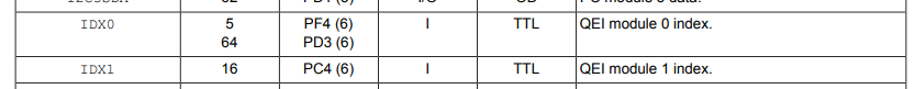 The QEI section of the datasheet provides further information on how the pins tie back to the peripheral: http://www.ti.com/lit/ds/symlink/tm4c123gh6pm.pdf Section 21 Quadrature Encoder Interface (QEI)