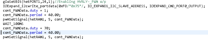 I am facing an issue wrt my HET PWM generation. My PWM stops in between and then starts again. it is periodic. I am running PWM at 25khzand 30% cycle. For example i am changing duty cycle from 1 percent to 70%. And then i see bunch of high freq pulses. The bunches are having a time gap between them. i have also put a break point after i set the PWM duty cycle and period.