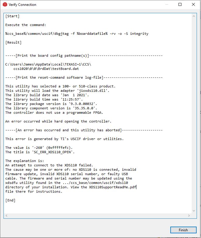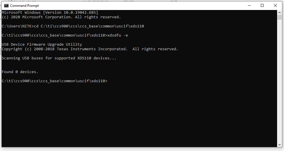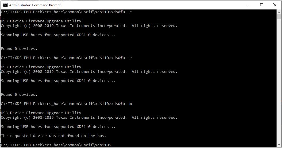 Windows 10 is unable to detect the XDS110 debug probe. However, the green light on D1 turns ON when the device is connected to the USB port. We have installed CCSv7.1.0, control suite v3.4.9, MATLAB 2017b and xdctools_3_50_08_24_core. We have two devices, both are not detected by the OS. We have also tried the solution provided in https://e2e.ti.com/support/tools/ccs/f/81/t/610305?Can-t-find-XDS110-U-device-with-CCS-or-xdsdfu-e and https://e2e.ti.com/support/wireless-connectivity/sub-1-ghz/f/156/p/887212/3281522#3281522 and https://software-dl.ti.com/ccs/esd/documents/xdsdebugprobes/emu_xds110.html#devices-supported We have also tried to connect the XDS110 to the PC with CCSv8, but the results were the same.