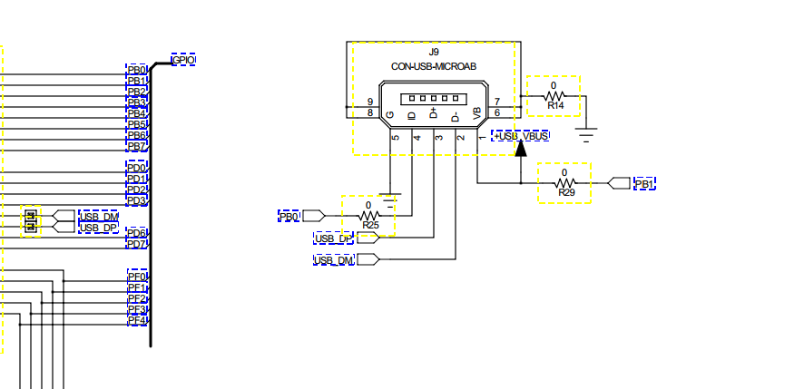 but once we connected the USB port, it caused a damage to some components and made the MCU PB1 is all the time connected to GND of PCB.