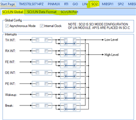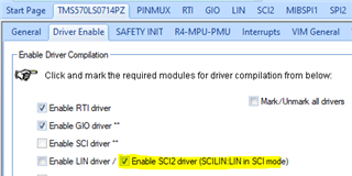 I am working currently with the TMS570LS 0714 A PZ QQ1 and I try to set up the SCI communication using the SCI2 (since the normal SCI is not supported for the PZ Package) by using the IRQ interrupt.