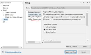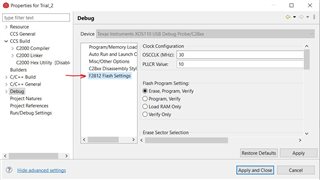 I have a custom TMS320F2812. I am able to debug and run the code in H0 mode sucessfully. Eventually I want to flash the code to internal flash. One of the issues I found during creating new project is that sometimes in the project properties, the flash setting option is not seen: