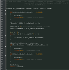 I want to know why the F2837xD_sci_flash_kernels_cpu01 seems to not be what's loading the code on the chip. When running an SCI bootloader and setting the boot mode select pins to SCI the processor should invoke this code but it doesn't. I've determined this because in the project in file SCI_GetFunction.c this code isn't correct(see picture below). All hex files generated by the Hex2000 tool start with AA08 as mentioned in https://www.ti.com/lit/ug/sprui09/sprui09.pdf section 2.2.11 but the code below as you can see seeks out 1BE4. This is wrong and then if you continue reading the attached PDF and compare it to the code MORE things seem to be wrong. No mention of length or commands to be received by GetPacket, no mention of how data as a pointer to a U16 array somehow gets loaded to the memory. I'm trying to get a working bootloader using serial_flash_progammer utility, but this project example provided in C2000ware ver 3.03 is blatantly in need of correction in order to be usable with custom hardware. Please advise.