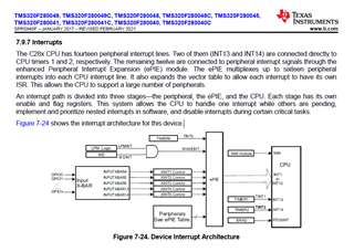 Within an interrupt service routine, the global and group priority can be changed by software to allow other interrupts to be serviced. The steps are the same as described before. The only difference is the mask values for IER and PIEIERx have been managed in the DSP28_SWPrioritizedIsrLevels.h file.