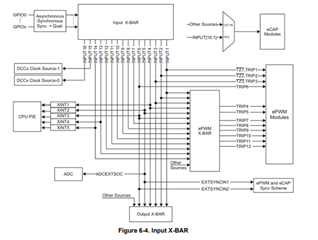 I'm looking into the X-BAR feature from the F280025 series and there is the possibility to configure GPIOs to trip the motor PWM and additionally give a monitor ouput, that the PWM is tripped.