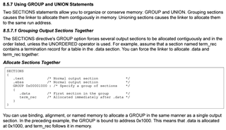 In a linker command file, is it possible to create a union of groups? If so, would you please steer me to the appropriate documentation?