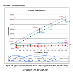 For the above image what will be total maximum currrent at 1.8V when my device is at 150MHz SYSCLKOUT. Also what is IDD currrent.