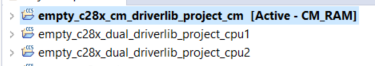 Now the customer needs an empty example project of CPU1+CPU2+CM, and they want to start development on this empty project to prevent some initial configuration error. But our C2000ware only have project for CPU1+CM and CPU1+CPU2, there is no CPU1+CPU2+CM example. How do we add CM support to the CPU1+CPU2 project? Or how to add support for CPU2 to the CPU1+CM project? Thanks!