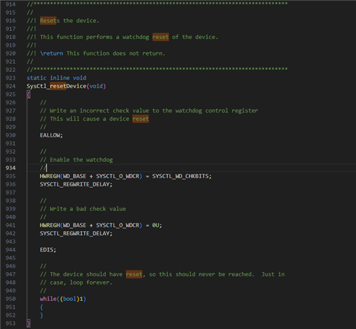 I want to perform a software reset on this micro controller(TMS320F280049C), similar to a power-on reset.Is there an API available to trigger a software reset of the micro-controller?