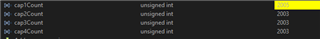 - following interrupts: event time stamp of ECAP_EVENT_1 is between 8000-8006 where all others (2-4) are still all equal 8003 (as expected)