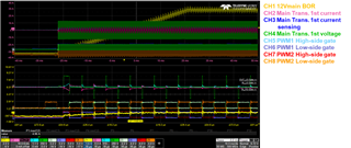 The Main trans. 1st current increases, but the PWM gate does not turn off and remains on.