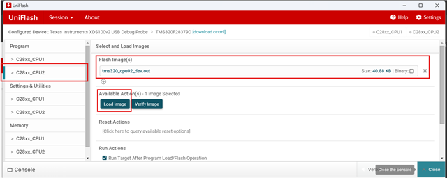 TMS320F28379D: Not able to upload .out file in both CPU.