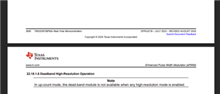 So to clarify, ePWM1 is phase shifted from ePWM2, and ePWM1 is HR for phase shift and deadband.