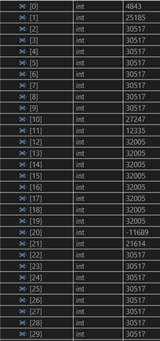 I've done the test on F28P65 launchpad with nothing connected to the SD_data input. In the fifo ISR, I reconfigure the OSR with SDFM_setFilterOverSamplingRatio every 10 samples. This is what I get into memory after test: