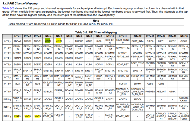 I'm working with the TMS320F28P65 DSP and using SysConfig for setup. I noticed that only 5 GPIO external interrupts are available/configurable in SysConfig. However, my application requires 7 external GPIO interrupts.