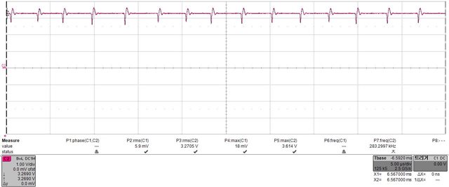 I designed a development board using the TMS320F2800157 chip. However, after applying 3.3V from the DC power supply and performing a test connection in CCS, it successfully displayed a message indicating a normal connection and loaded the program into the out file. But when attempting to output a signal from the GPIO, I observed significant noise in this signal. While troubleshooting to reduce this noise, I discovered noise on the DC link when connecting the power supply to my development board's power section.