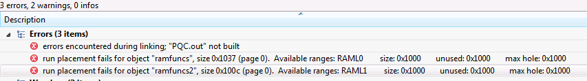 But I am getting followng error "run placement fails for object "ramfuncs""