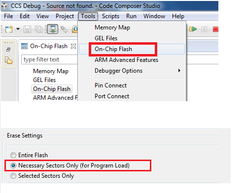 I'm currently working on a bootloader program for the F28M36x processor, if I start a debugging session in the CCS the Program code is flashed to the processor. But if this is done CCS erases the whole flash before the new program is written.