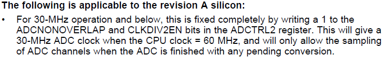 2. If the first SOC in a sequence has a very long sample time set along with the NONOVERLAP mode, is that a possible way to get past the initial conversion errata? I’m finding the 13 ADC cycles for conversion is what is taking up most of the time in my calculations since the sample time is only 7 ADC clocks, so the only way to reduce the conversion time is to run the ADC at a faster frequency.