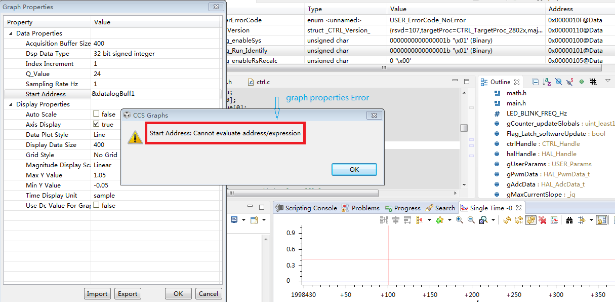 single or dual time file from “..\sw\solutions\instaspin_foc\src\proj_lab01b_d1&d2_1.graphProp. " then click OK, the above error appear. after that, I resume the program. the graph windows value is always zero.