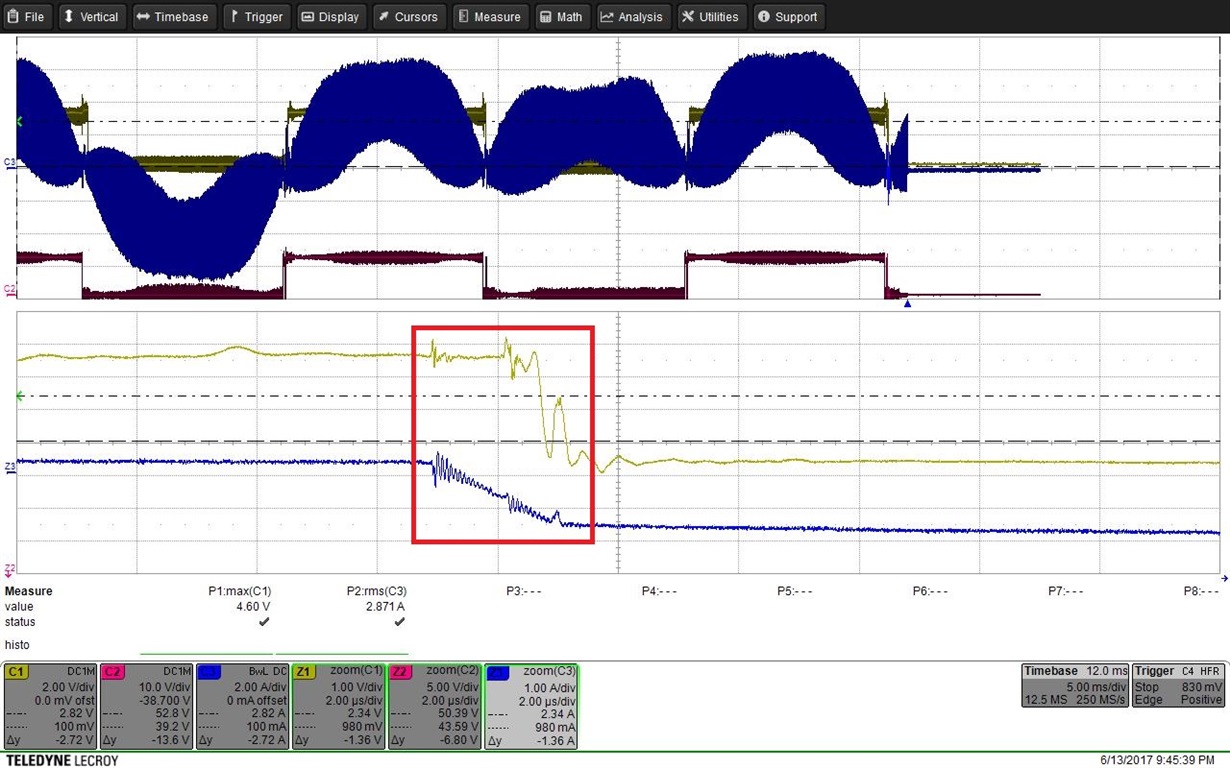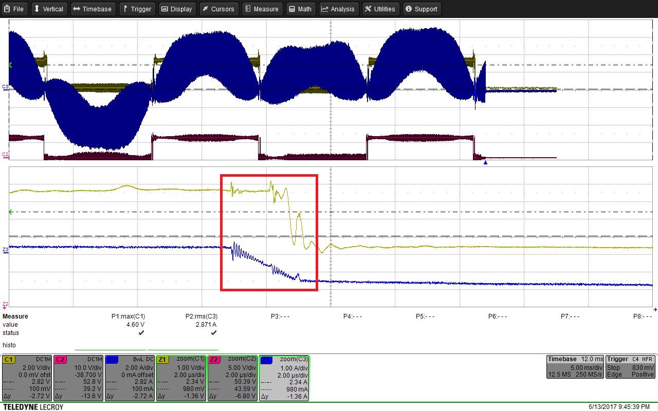 Ch1: ZCD Signal(connect to Capture pin); Ch2: PWM; Ch3: Inductor current.