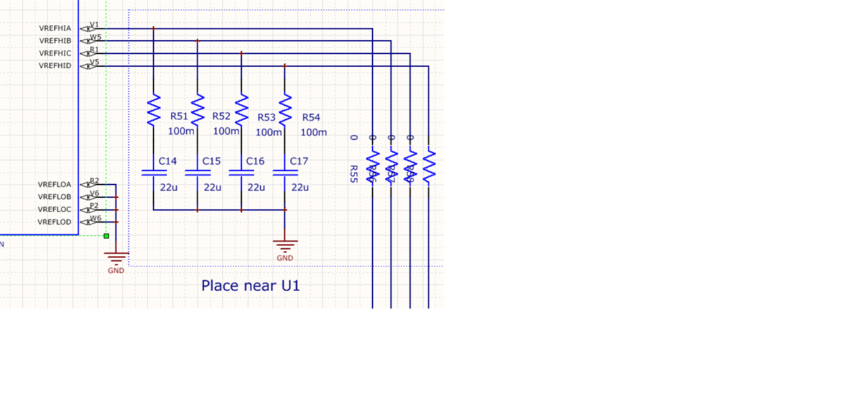 In controlcard demo (TMDSCNCD28379D),as shown in the diagram below, we can see that the reference pin(VREFHIA VREFHIB VREFHIC VREFHID) is connected to the filter capacitor through 100m ohm. Why do you need this resistors? We don't expect the series equivalent resistance of capacitors (ESR)to be smaller, the better?I hope you can tell me how to do it.