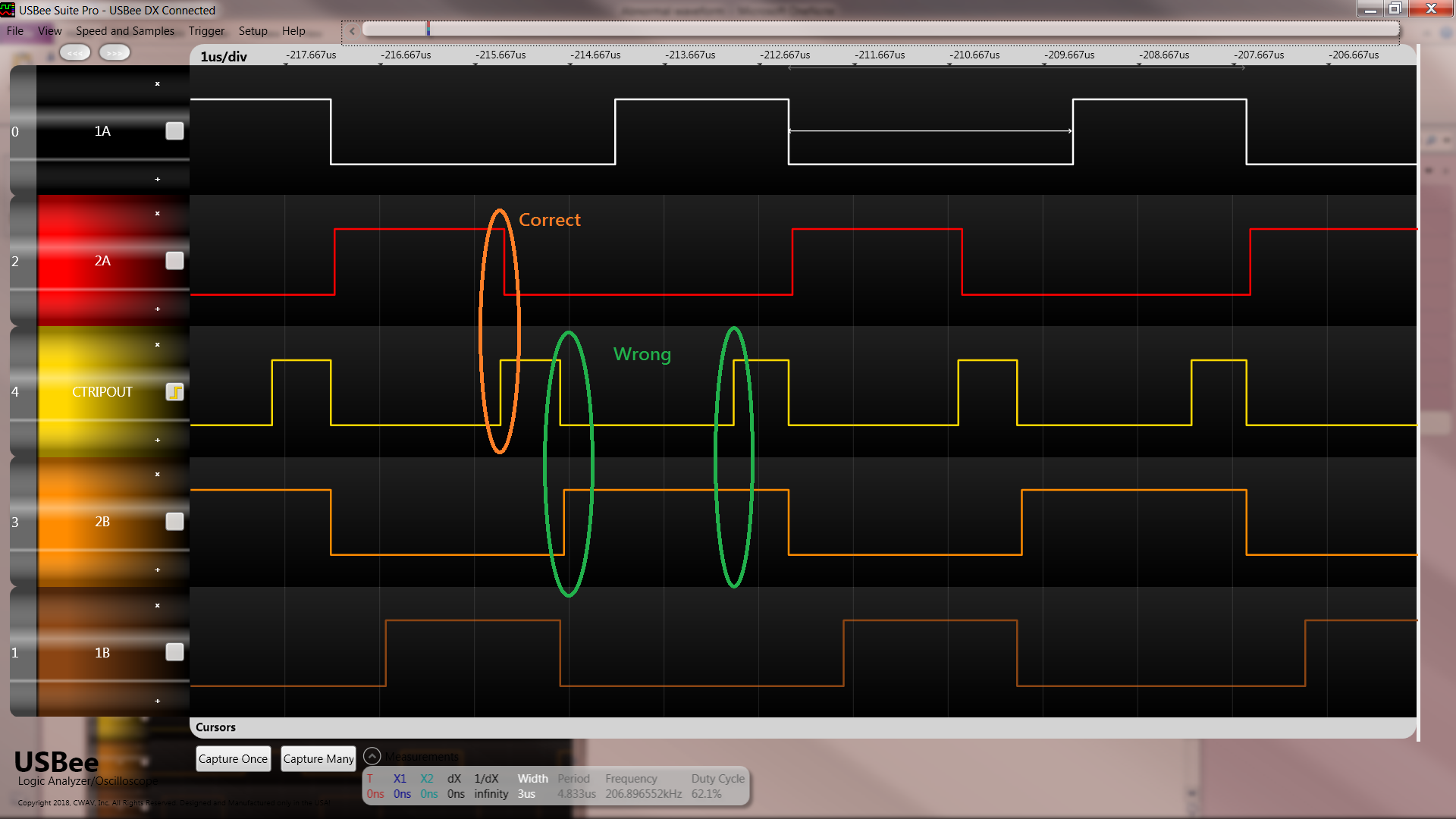 We the the PWMB signal was becoming uncontrollable when the T1 event was triggered.