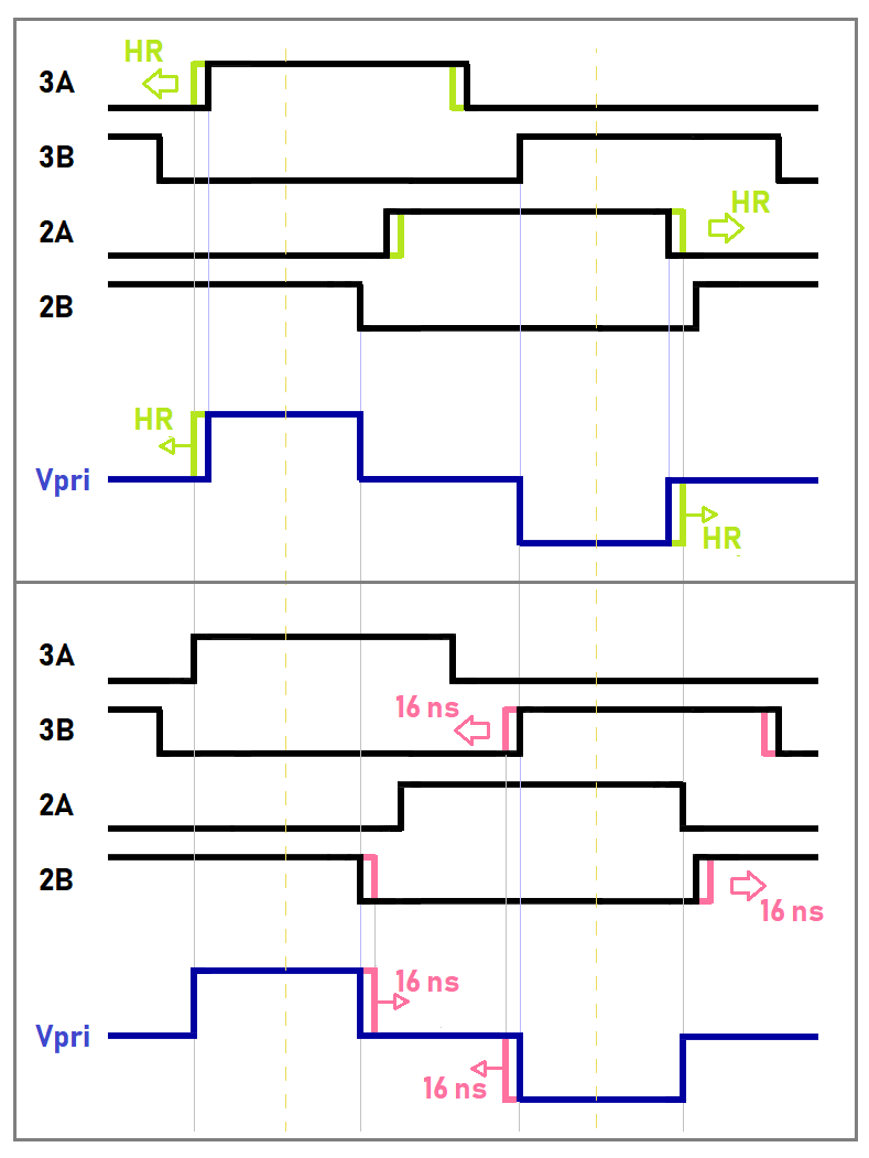 Then: in our first tests we have seen that only one of the two wavefronts of the A-type pwm is shifting with high resolution, while the other one shifts with standard 16,6 ns steps. I think this will make HRPWM ineffective or even dangerous because of xformer imbalance. Why does it happens ? How can we make both pwm wavefronts move with high resolution ?
