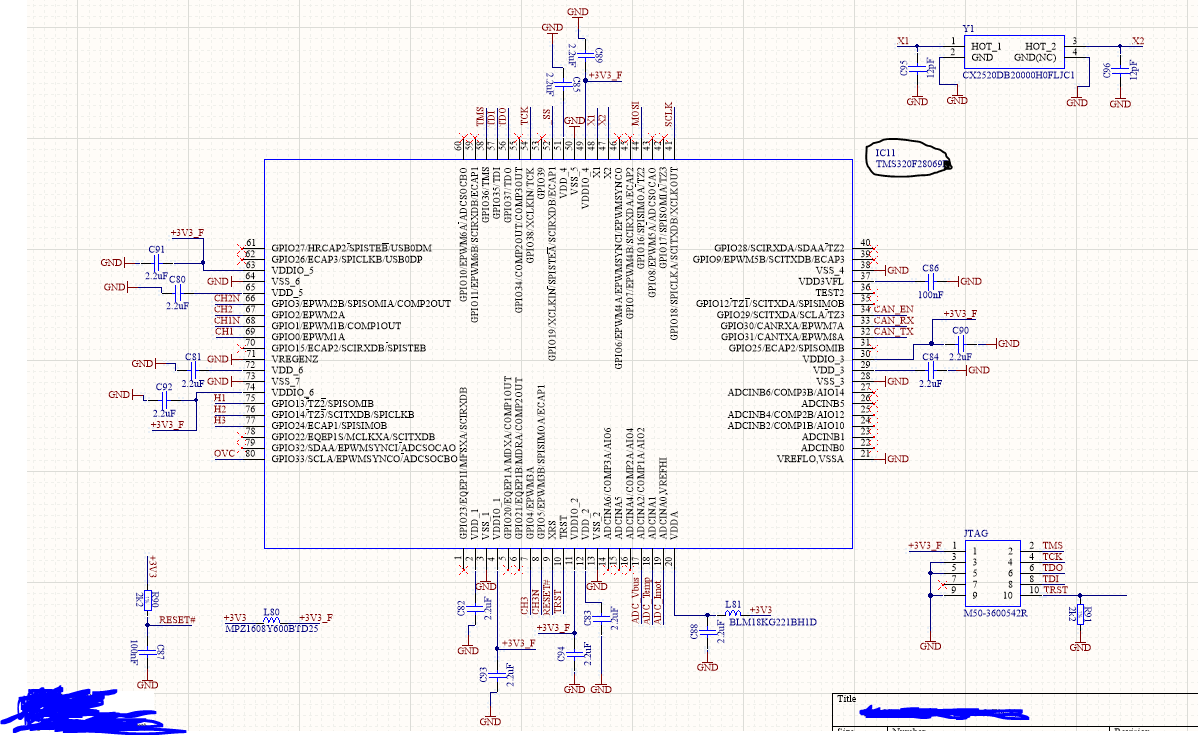 I've a strange problem with custom board mounting TMS320F28069M MCU. I try to program it with XDS110 (from Launchpad F280049C).