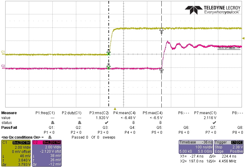 I use the eCap Function of 28379D to capture the rising edge of an GPIO's pulse, as you can see in the figure below, CH4 is the pulse of the GPIO to trigger the eCap, and CH3 is the signal sent out by eCap interrupt_isr when the DSP capture the rising edge. so why it has such a larger time delay? the system clock is set to 200MHz.