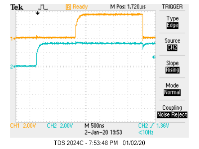 OK, now that that's out of the way, when I run the code, I see the slave being addressed on the I2C bus followed immediately by a NACK. Nothing further happens.