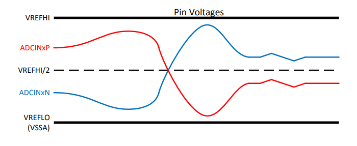 I wanna do a 16 bit read on the MCU. As I can see that, Both ADCINxP and ADCINxN can swing between VREFHI and VSS.