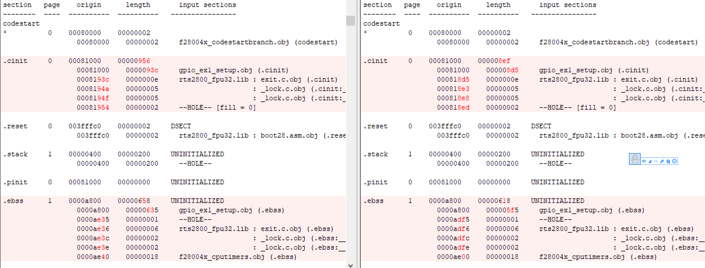 There's .map files comparing results between two condition(left is in issue condition, right is in normal condition).