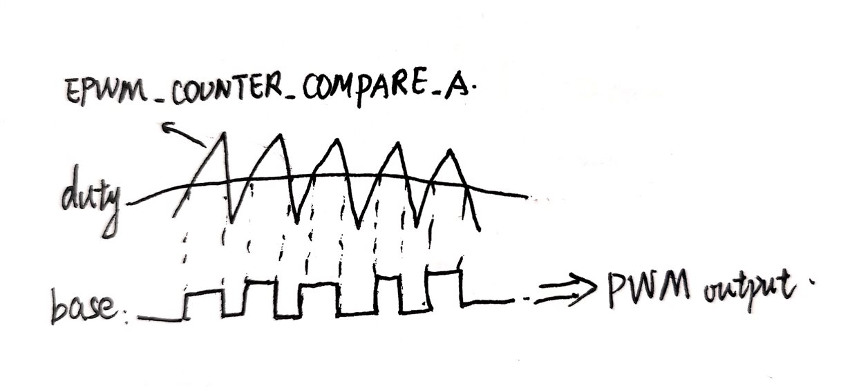 How to deal with the duty cycle of dut1ypu input during the current loop debugging? Put duty1pu and PWM_ Period multiplication is assigned to duty1, which is used as modulation wave and triangular wave epwm_ COUNTER_ COMPARE_ A compare the output PWM?