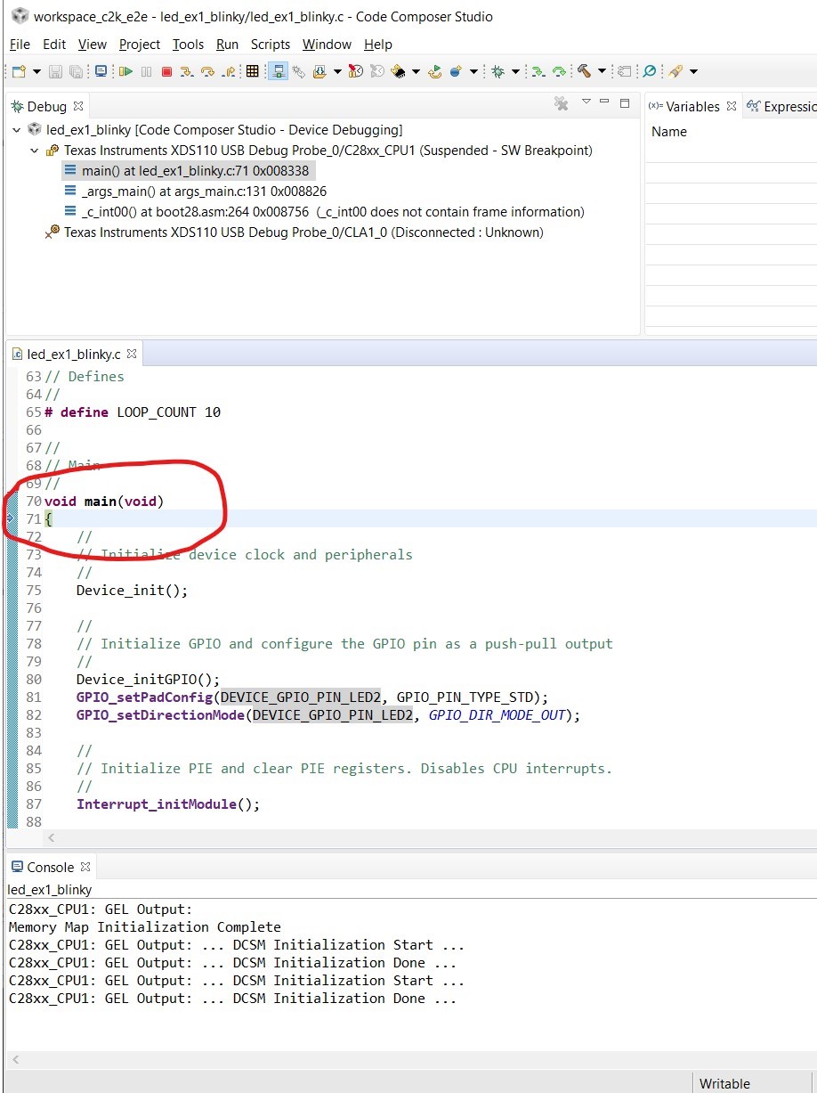 I am working on a PLC EVK, but was failed to load the example code boostxl_afe031_f28004x_dacmode to the C2000 Launchpad LAUNCHXL-F28049C. Followed with the instructions, the CCS Version 10.1 has been installed, the XDS110 driver has been updated, the cJTAG 2-pin advanced modes and OSCAN2 format were selected under connection properties. There's no error prompt with "Build" and "Load" operation (led2 is flashing while Loading). But after reboot, it's sill running the preloaded program. Another example code led_ex1_blinky was also tried , but same situation was experienced.