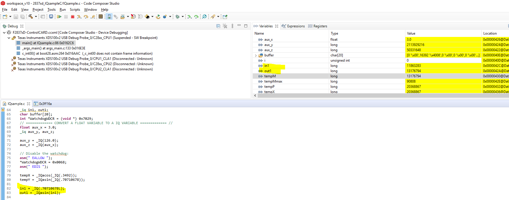but when I use CCS V6 debug the formula :IQasin,it results :