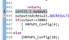 For this I have merged ADC_SoC amd HRPWM examples. And I have changed pin 4,2 to 0,1 of ADC and ePWM1 to ePWM2. I assume that ADC value is being stored in Voltage1[ConversionCount]. By providing if statement during build error is showing that this line is unreachable. It seems that it is array. How to take that variable in which ADc value is stored? I have copied ADC_SOC in HRPWM. The error line is highlighted. The error reason is given in picture