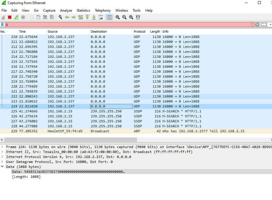 As you can see, to every ping request number N, there is a reply to N-1. It happens the same to UDP packets. Many times, there is a ping reply, when a UDP is sent as well.